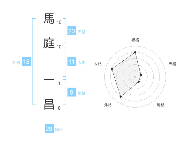 馬庭 一昌さんの総格は29画の4点!