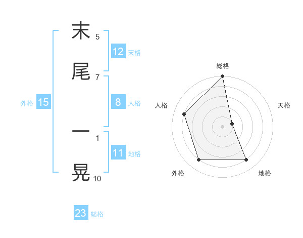 末尾 一晃さんを姓名の画数から五運を鑑定