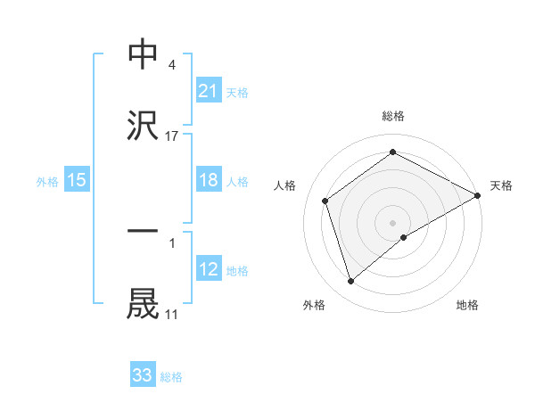 中沢 一晟さんを姓名の画数から五運を鑑定