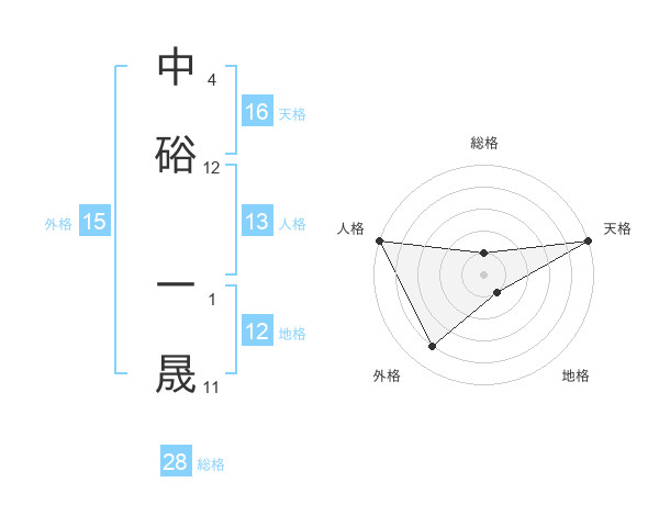 中硲 一晟さんを姓名の画数から五運を鑑定