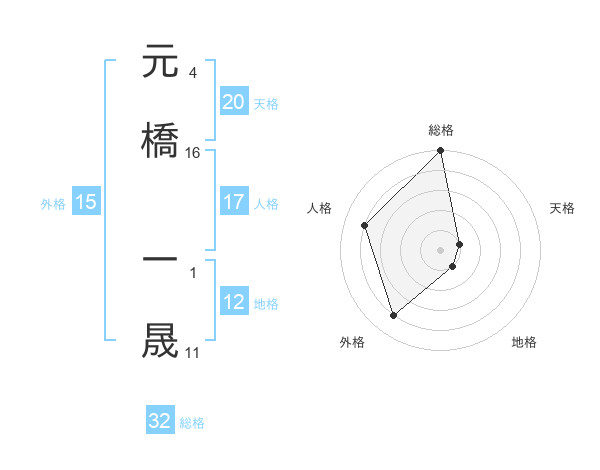 元橋 一晟さんを姓名の画数から五運を鑑定