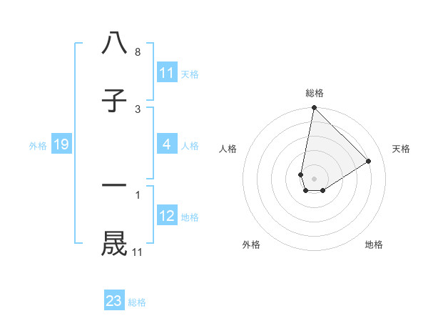 八子 一晟さんの総格は23画の5点!