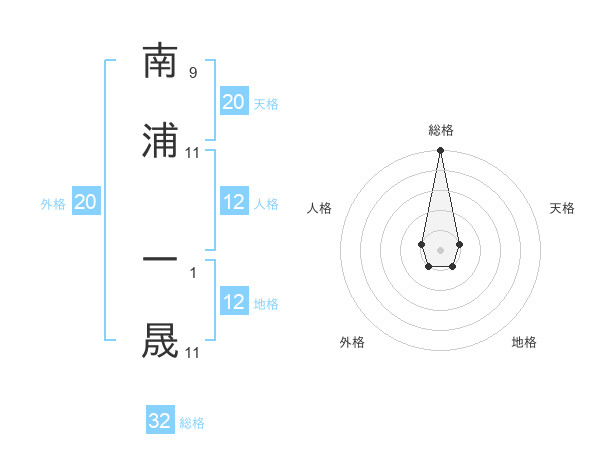 南浦 一晟さんを姓名の画数から五運を鑑定
