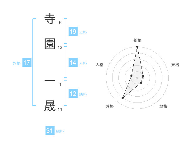 寺園 一晟さんの天格は19画の1点!