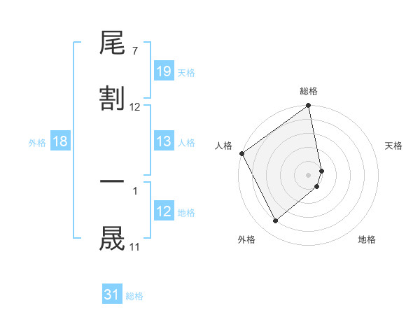 尾割 一晟さんの天格は19画の1点!