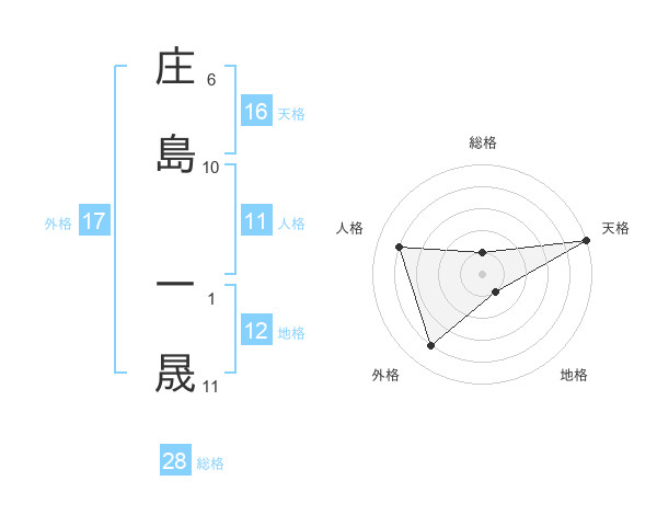 庄島 一晟さんの総格は28画の1点!