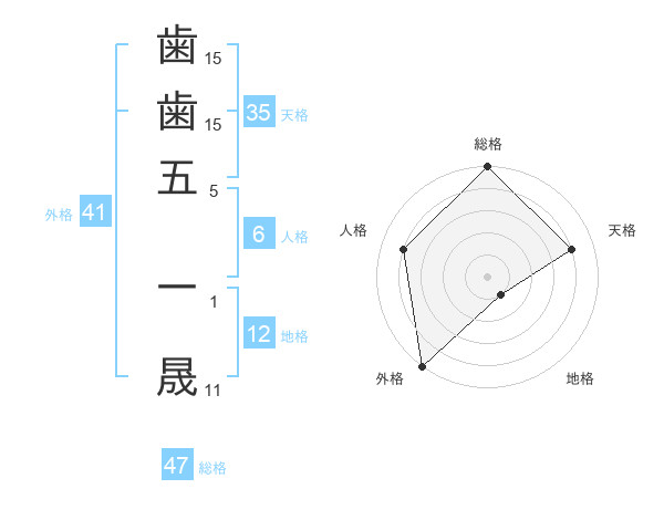 歯歯五 一晟さんを姓名の画数から五運を鑑定