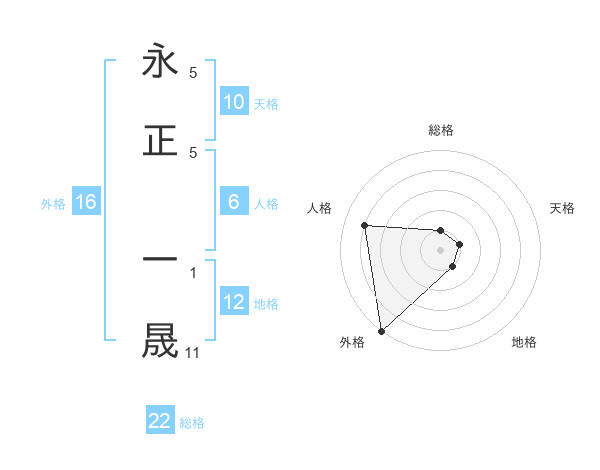 永正 一晟さんの外格は16画の5点!