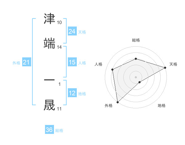 津端 一晟さんの天格は24画の5点!