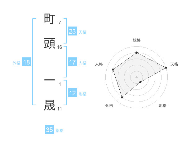 町頭 一晟さんの総格は35画の4点!