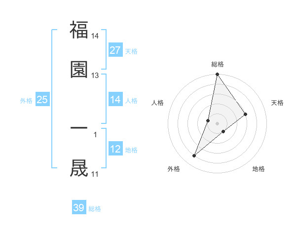 福園 一晟さんの総格は39画の5点!