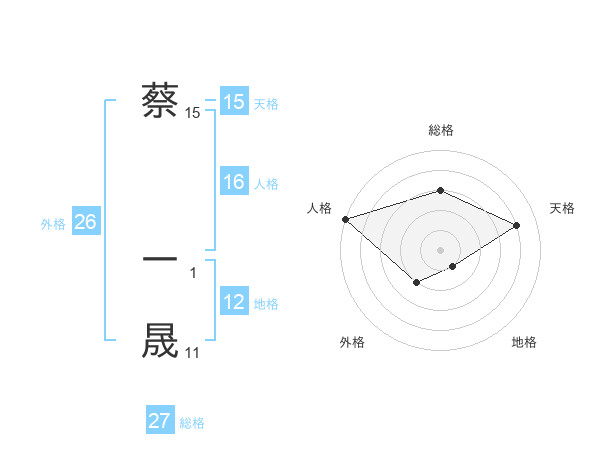 蔡 一晟さんの外格は26画の2点!