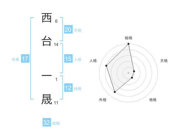 西台 一晟さんの総格は32画の5点!