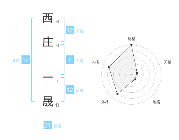 西庄 一晟さんの総格は24画の5点!