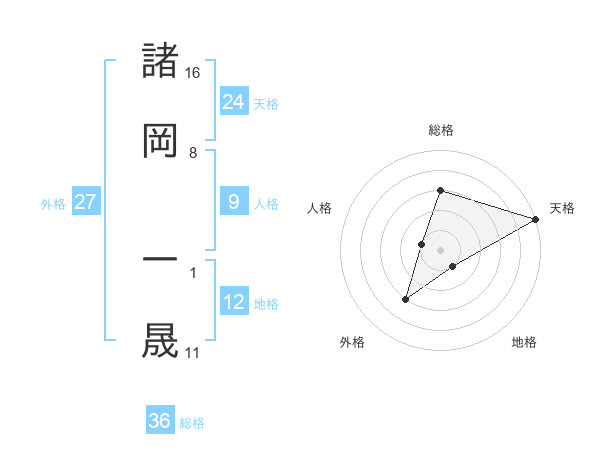 諸岡 一晟さんを姓名の画数から五運を鑑定