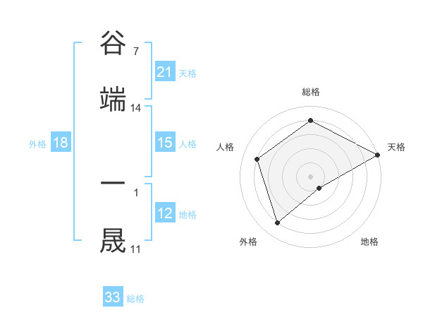 谷端 一晟さんの天格は21画の5点!
