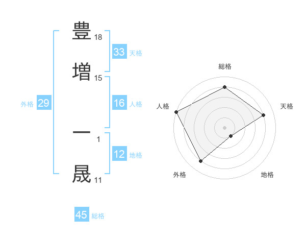 豊増 一晟さんの総格は45画の4点!