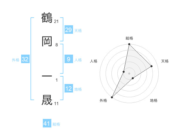 鶴岡 一晟さんを姓名の画数から五運を鑑定