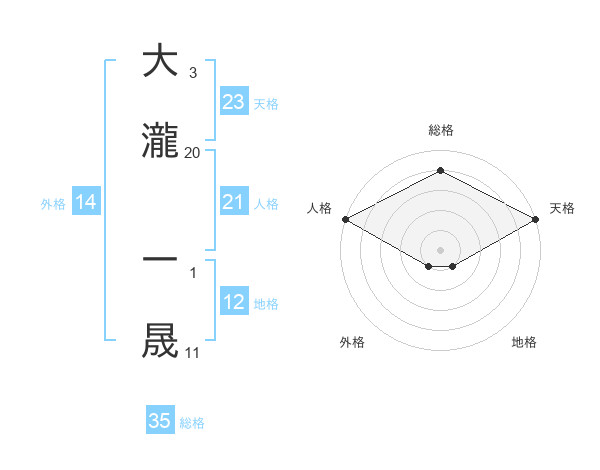 大瀧 一晟さんの総格は35画の4点!