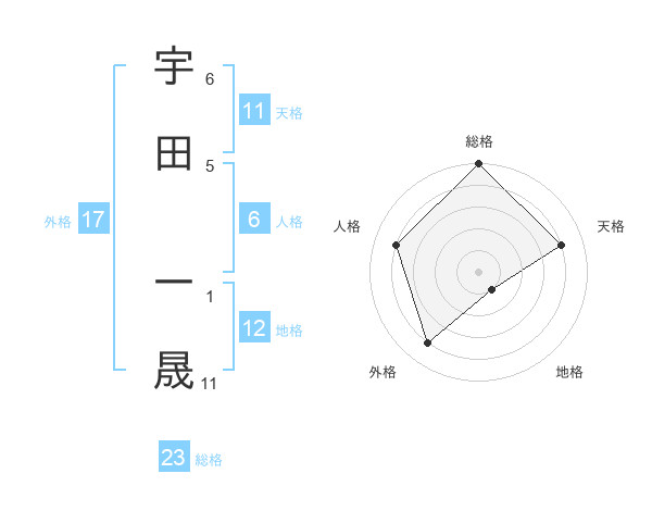 宇田 一晟さんの総格は23画の5点!