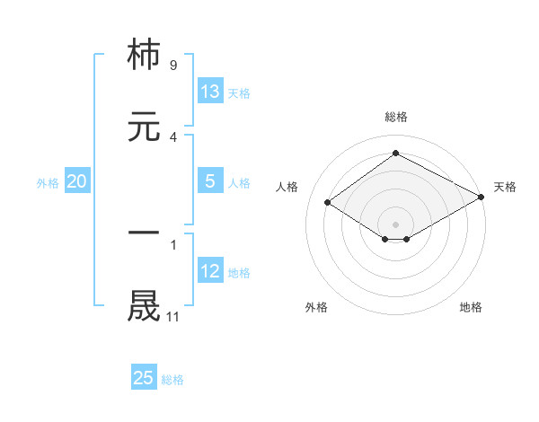 柿元 一晟さんを姓名の画数から五運を鑑定