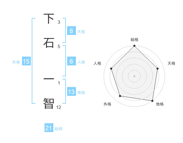 下石 一智さんの総格は21画の5点!