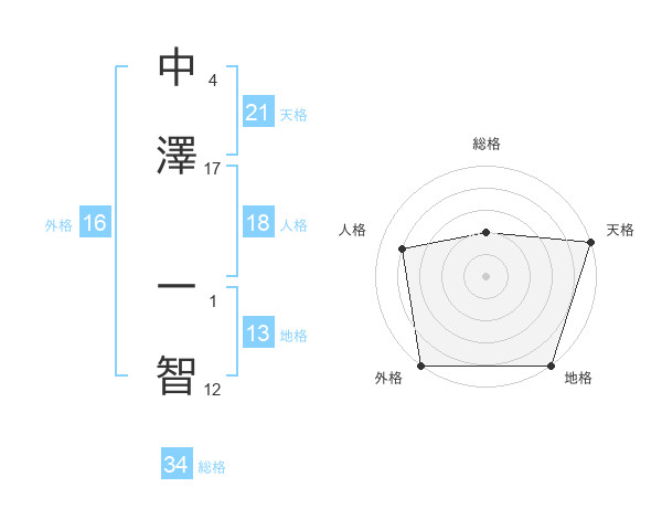 中澤 一智さんの天格は21画の5点!