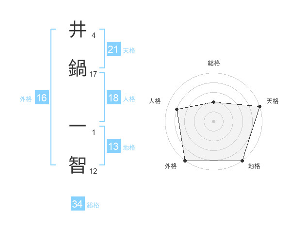 井鍋 一智さんを姓名の画数から五運を鑑定