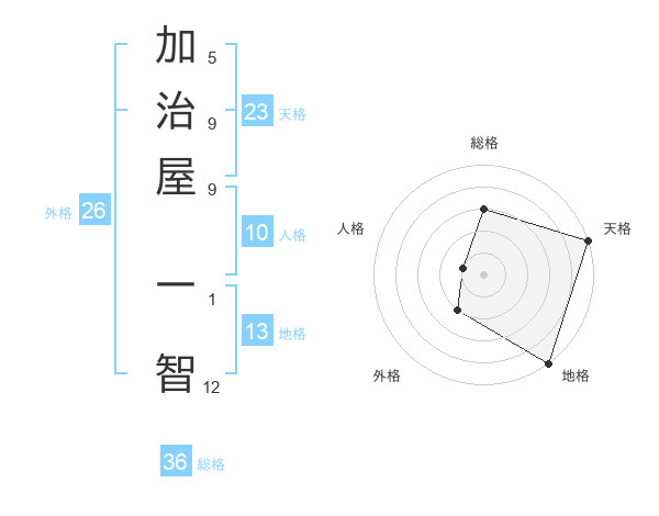 加治屋 一智さんを姓名の画数から五運を鑑定