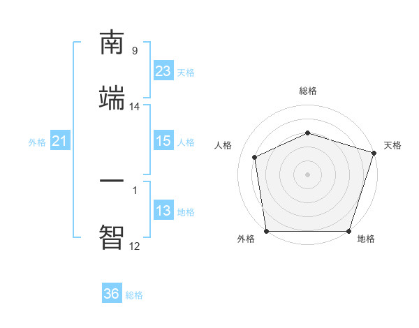 南端 一智さんの天格は23画の5点!