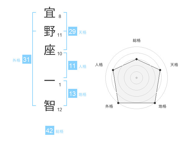 宜野座 一智さんを姓名の画数から五運を鑑定