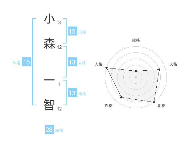 小森 一智さんの総格は28画の1点!