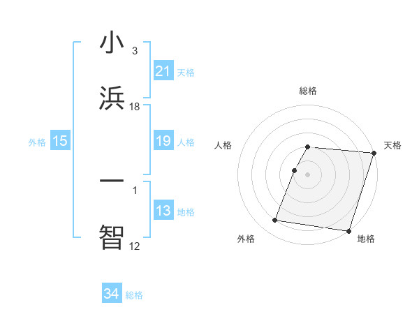 小浜 一智さんの総格は34画の2点!