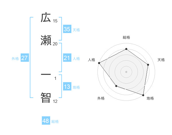 広瀬 一智さんの天格は35画の4点!