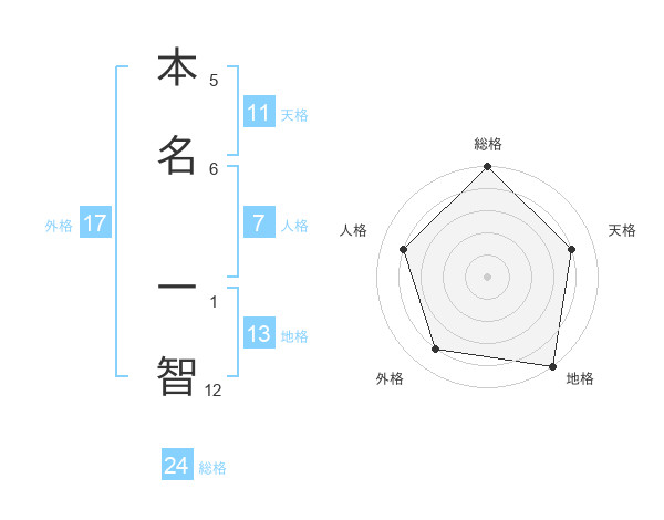 本名 一智さんの地格は13画の5点!