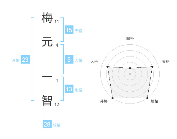 梅元 一智さんの外格は23画の5点!