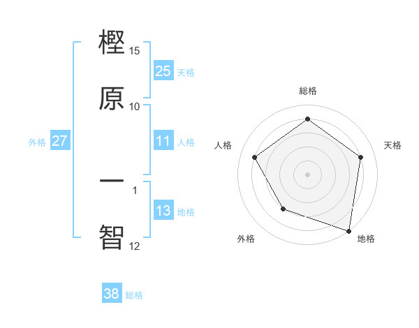 樫原 一智さんの総格は38画の4点!