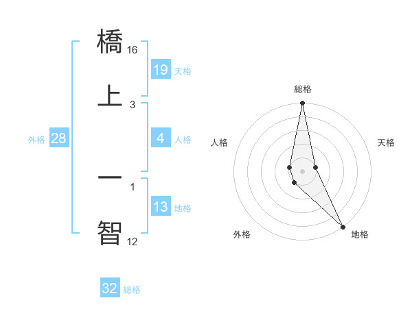 橋上 一智さんの総格は32画の5点!