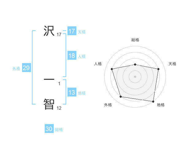 沢 一智さんの天格は17画の4点!