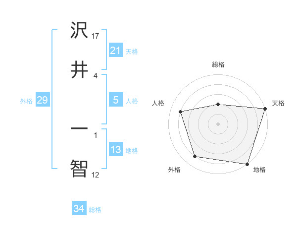 沢井 一智さんの天格は21画の5点!