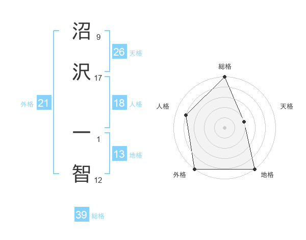 沼沢 一智さんの総格は39画の5点!