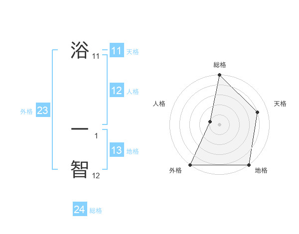 浴 一智さんの外格は23画の5点!