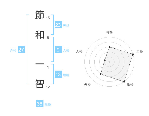 節和 一智さんの天格は23画の5点!