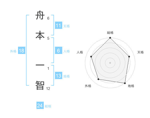 舟本 一智さんの天格は11画の4点!