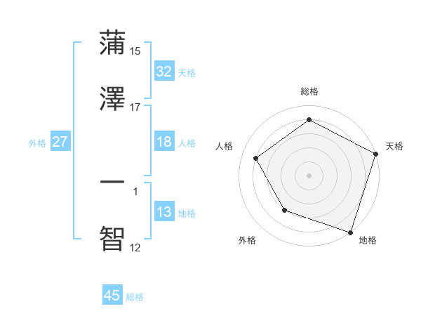 蒲澤 一智さんの天格は32画の5点!