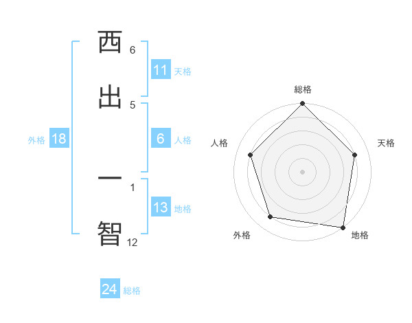 西出 一智さんの総格は24画の5点!
