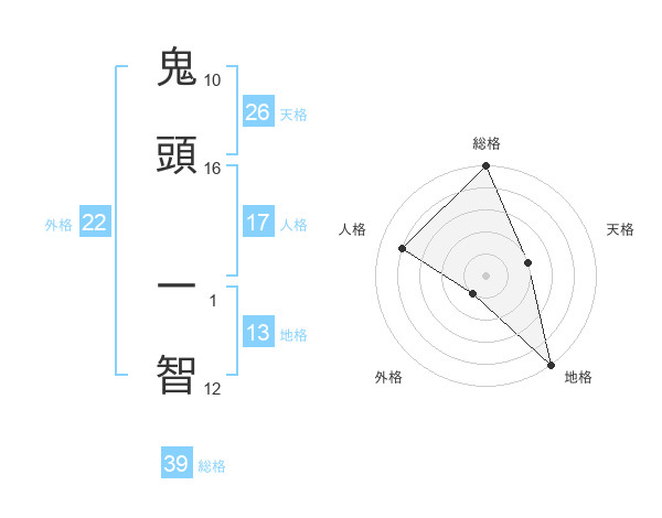 鬼頭 一智さんの総格は39画の5点!