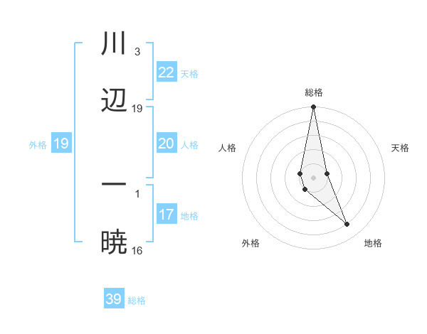川辺 一暁さんを姓名の画数から五運を鑑定