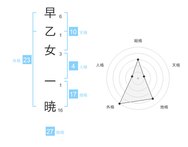 早乙女 一暁さんを姓名の画数から五運を鑑定