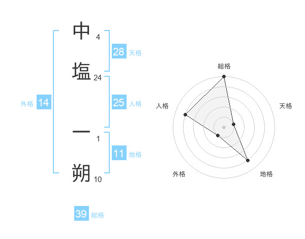 中塩 一朔さんの総格は39画の5点!